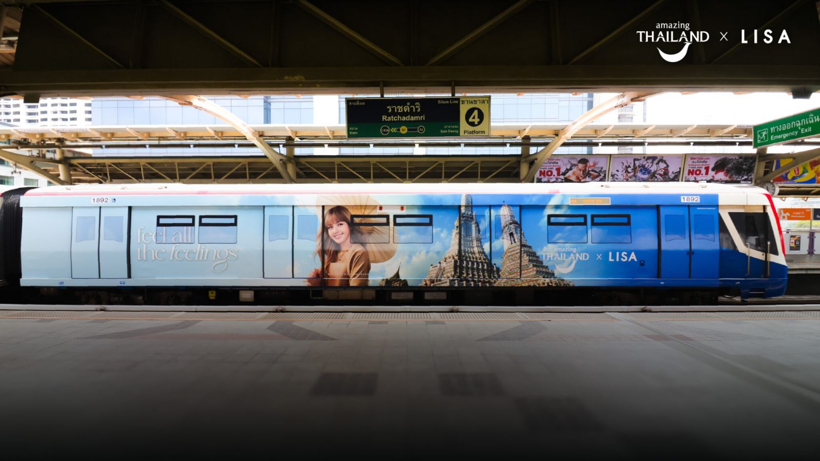 在活動推出後,TAT 進一步延伸推出 「Following LISA’s Footsteps(跟隨 LISA 的足跡)」 計畫,邀請大眾在城市中尋找本次宣傳活動的影像,包括 TVC 與主要視覺素材。這些內容已出現在泰國各地街頭。其中最具代表性的宣傳形式之一,是 曼谷 BTS 空鐵深綠線與淺綠線的整車包裝列車,以「Amazing Thailand x LISA – Feel All the Feelings」為主題打造。乘客在日常通勤時即可沉浸在宣傳活動氛圍中。該列車包裝將從即日起運行至 2026 年 5 月。
