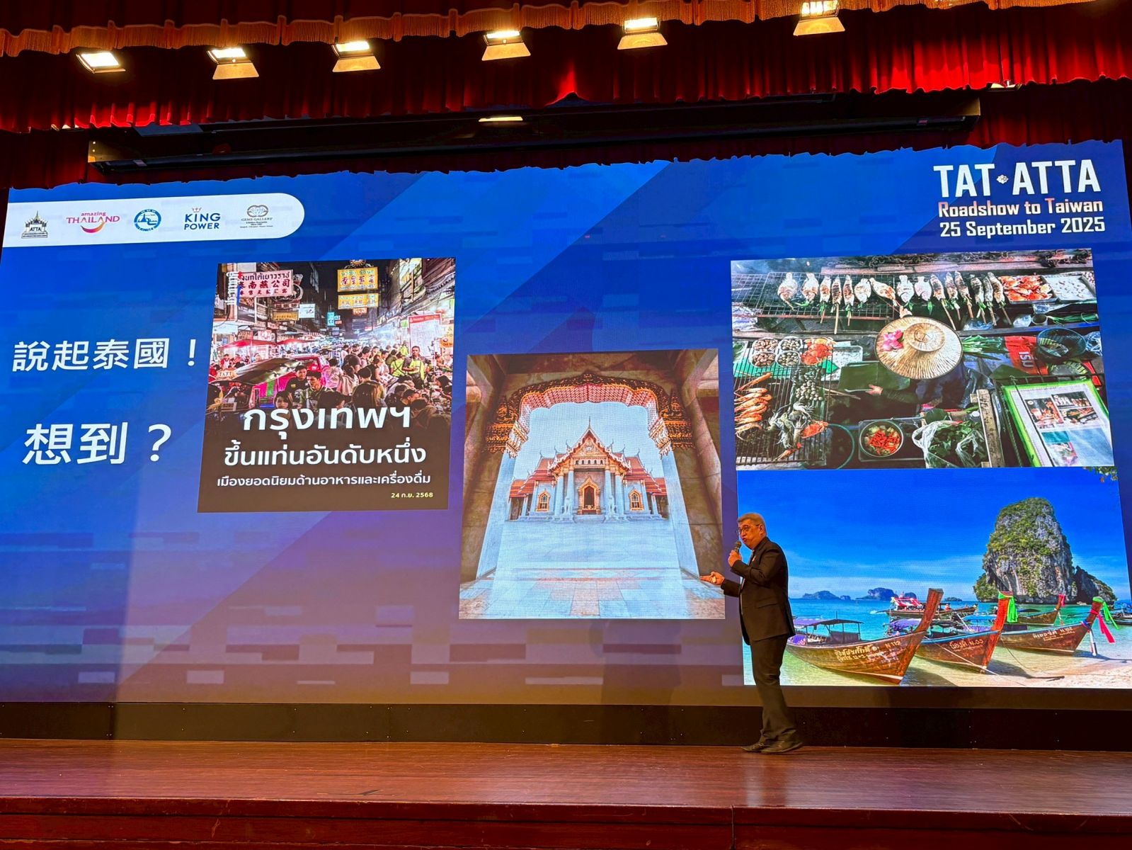 泰國觀光局帶領47家泰國旅遊相關業者於9月25日在台北圓山飯店舉行旅遊交易會,展開與台灣業者面對面交流洽商的機會,本次邀請超過240家台灣旅遊業者,47家來訪泰國業者,包括飯店及海濱渡假村、旅行社、餐廳與購物及娛樂公司等等,將多樣化的泰國新景點及新行程資訊,介紹給台灣旅遊業者,歡迎台灣旅客來泰國親身體驗。