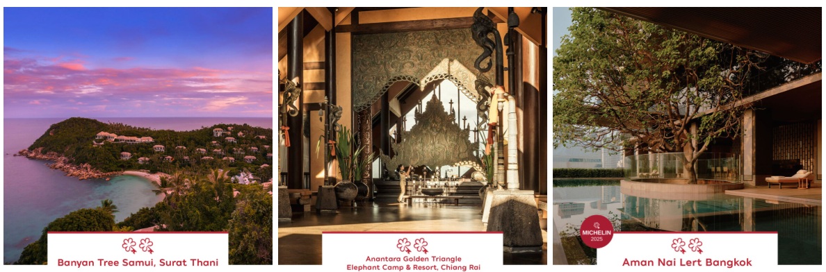2025 年《米其林鑰匙精選名單》共評選出 6 家獲得三星鑰匙飯店、21 家獲得兩星鑰匙飯店、以及 35 家獲得一星鑰匙飯店,展現了泰國在奢華、文化傳承與身心療癒旅宿間的多樣魅力。
